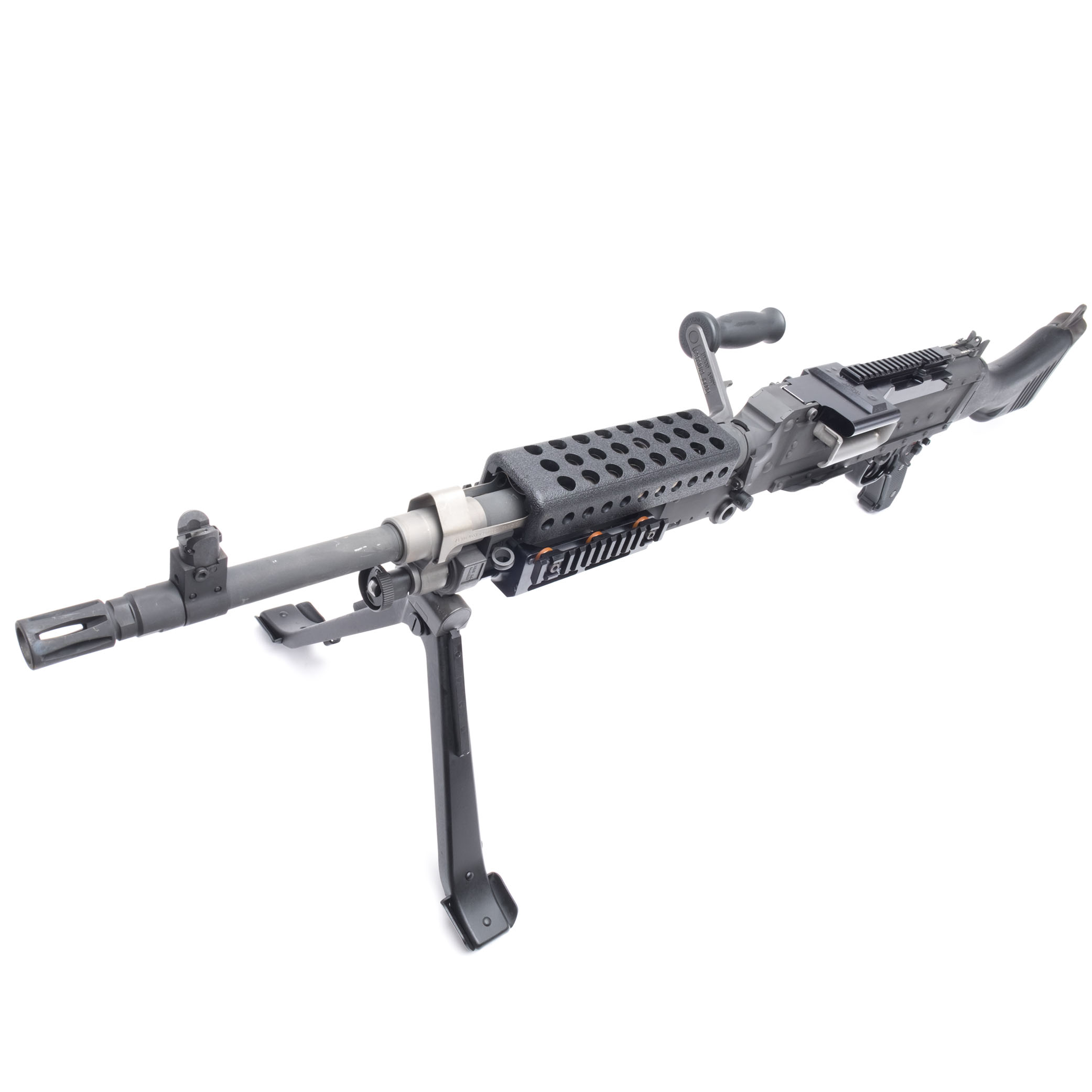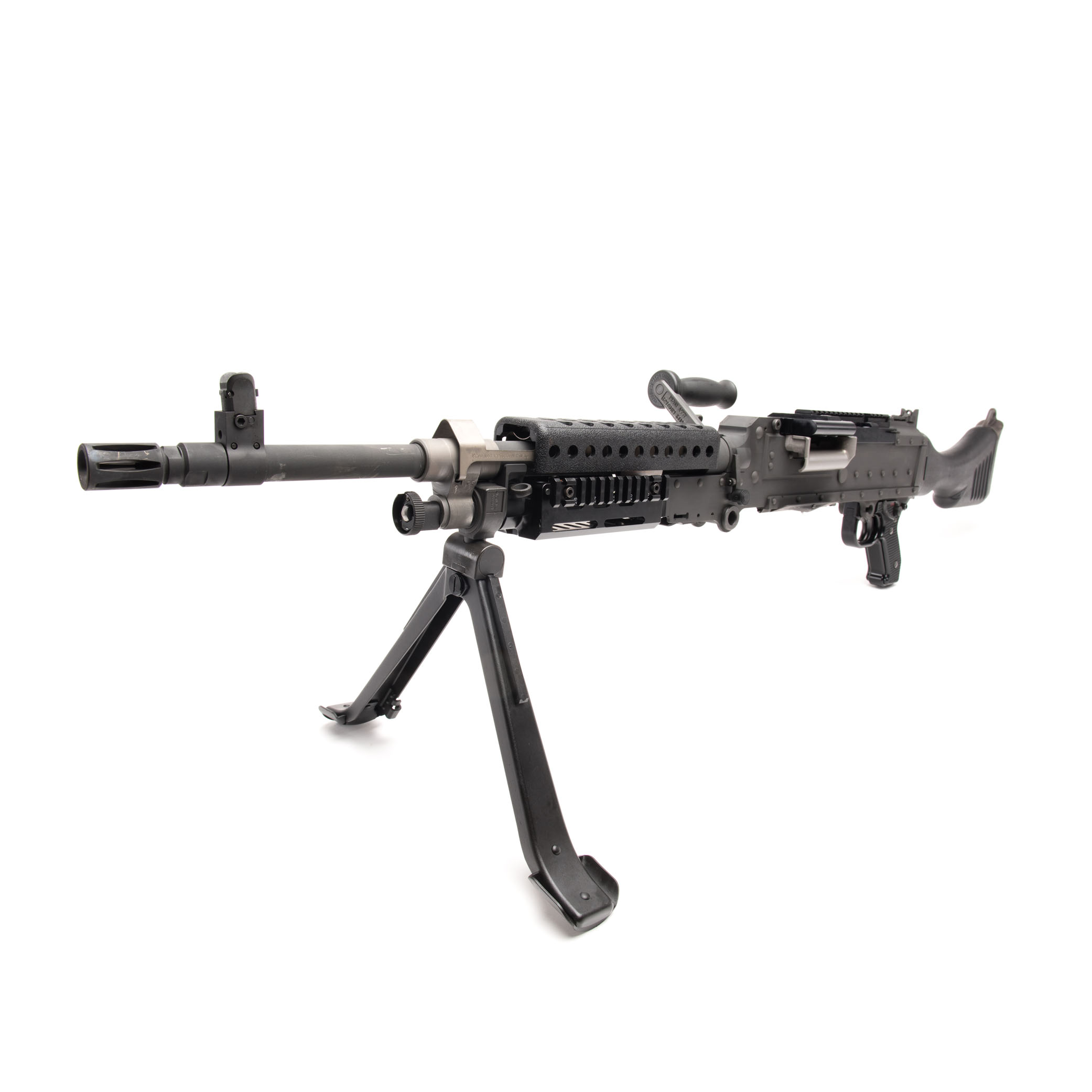 The US military General Purpose Machine Gun (GPMG), belt-fed, air-cooled, crew-served system chambered in 7.62mm NATO, Infantry model.