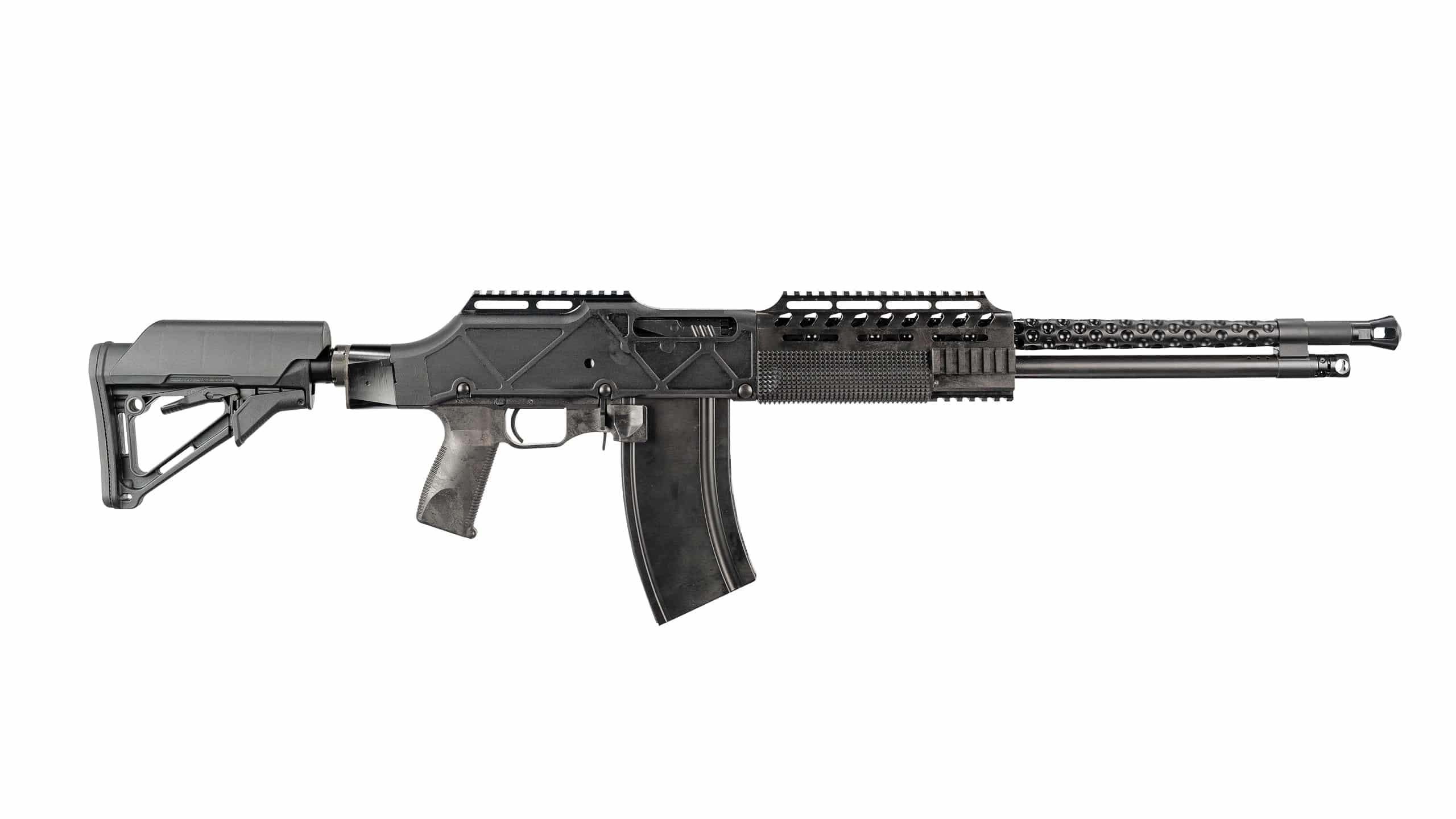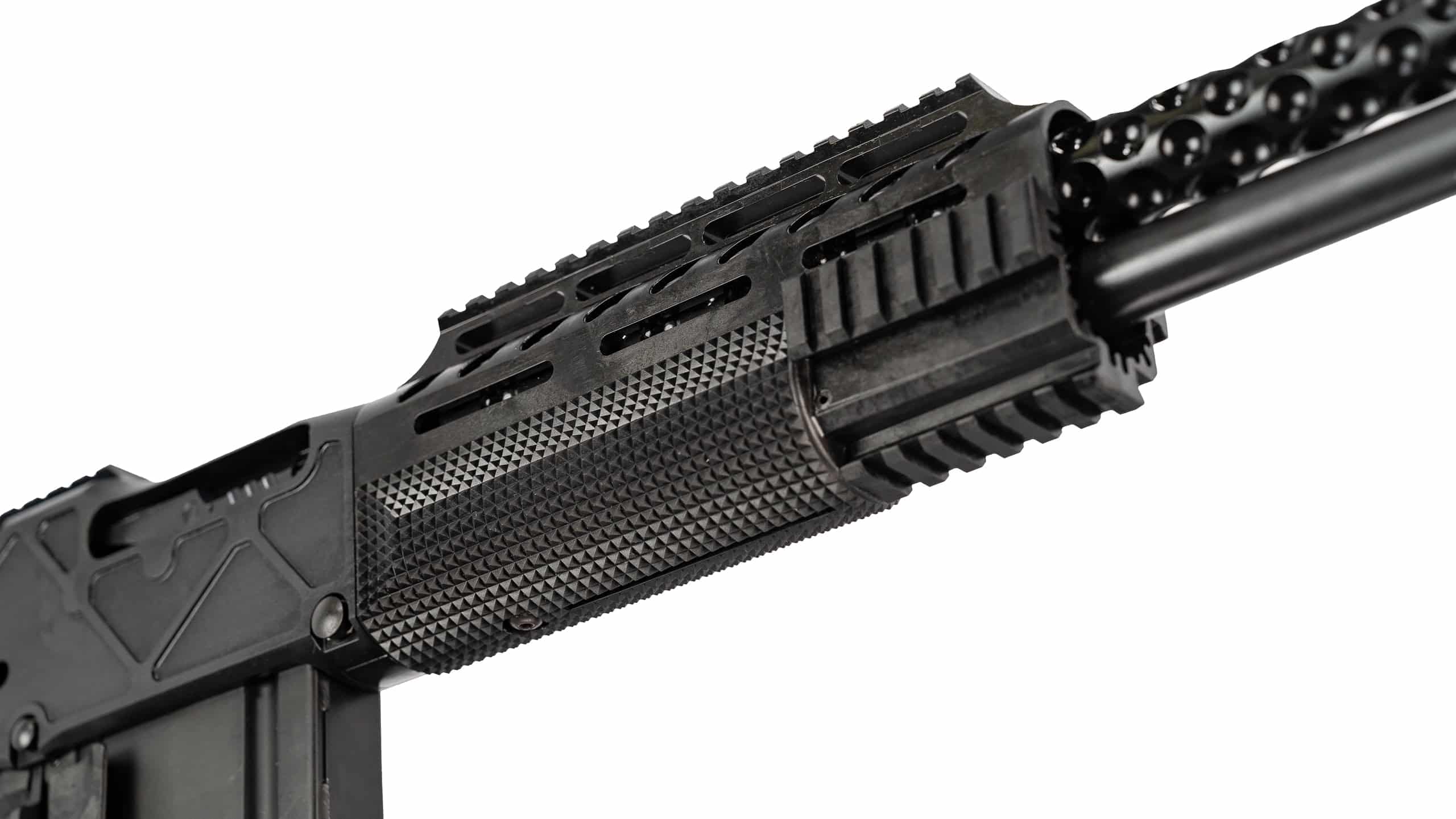 The HCAR is a modernized version of the M1918 BAR, with improvements such as adjustable stock, 45-degree selector switch, takedown pins, bolt hold open, picatinny rails and carbon fiber trigger section. It also features an adjustable gas regulator (3-position) for suppressors, and a hydraulic buffer. It comes with either a 16″ barrel or 20″ barrel, with a 1/10 rifling twist rate and a 5/8-24 muzzle threading. The barrel is free-floated for better precision.