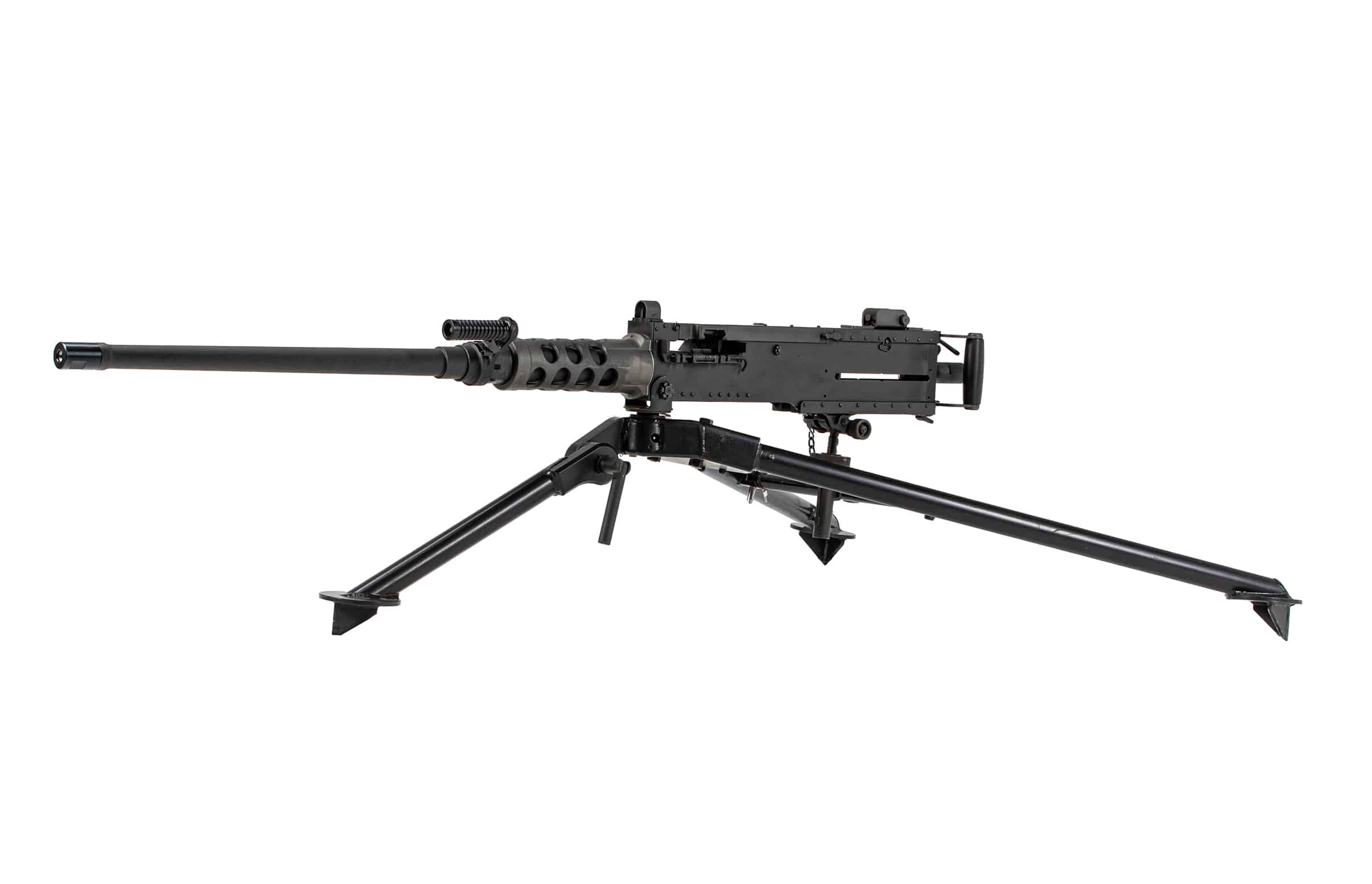 The M2-SLR features a belt-fed design for sustained fire and accepts standard .50 BMG belts, adding to its authenticity. Its quick-change barrel system ensures efficient maintenance and allows extended shooting sessions, making it both practical and iconic.