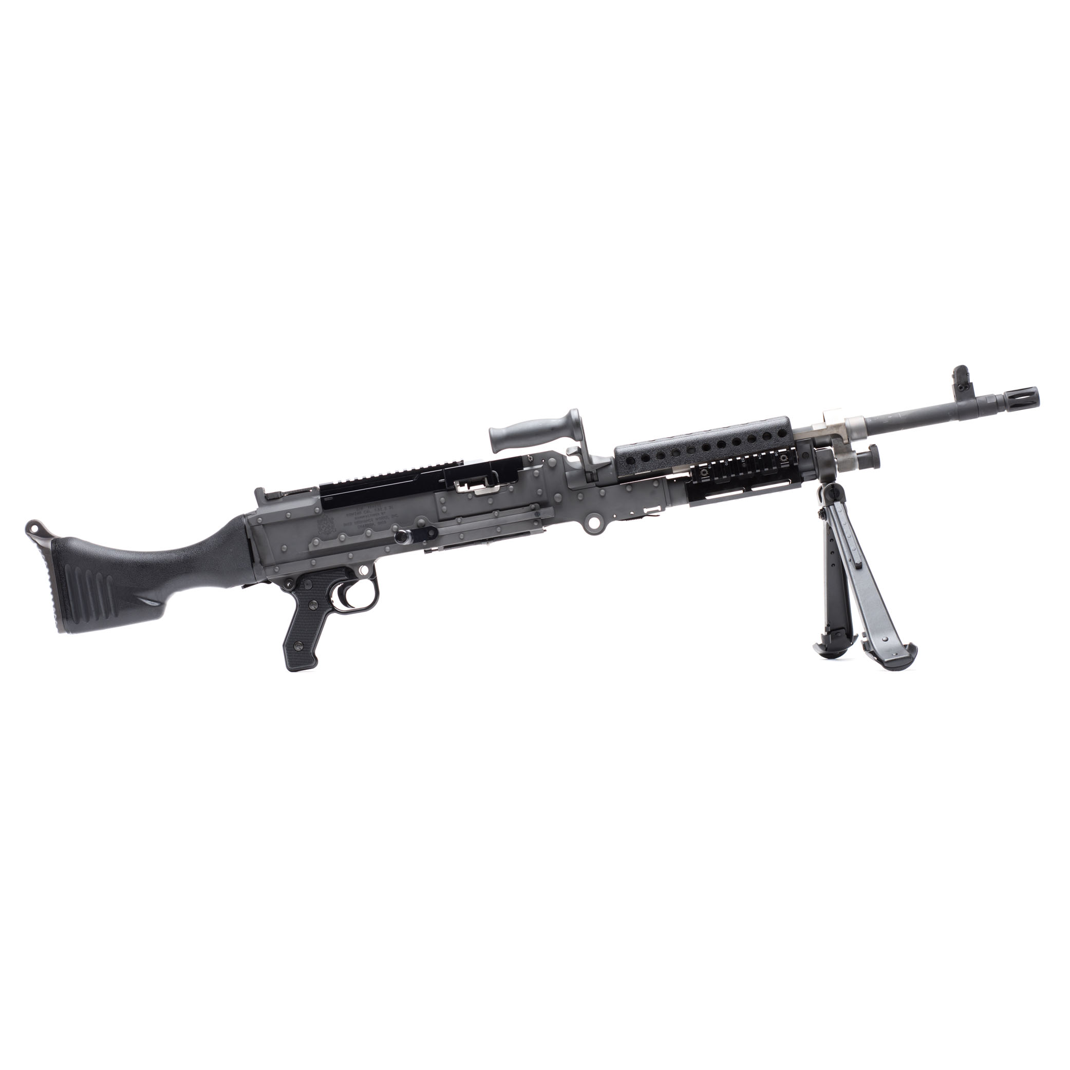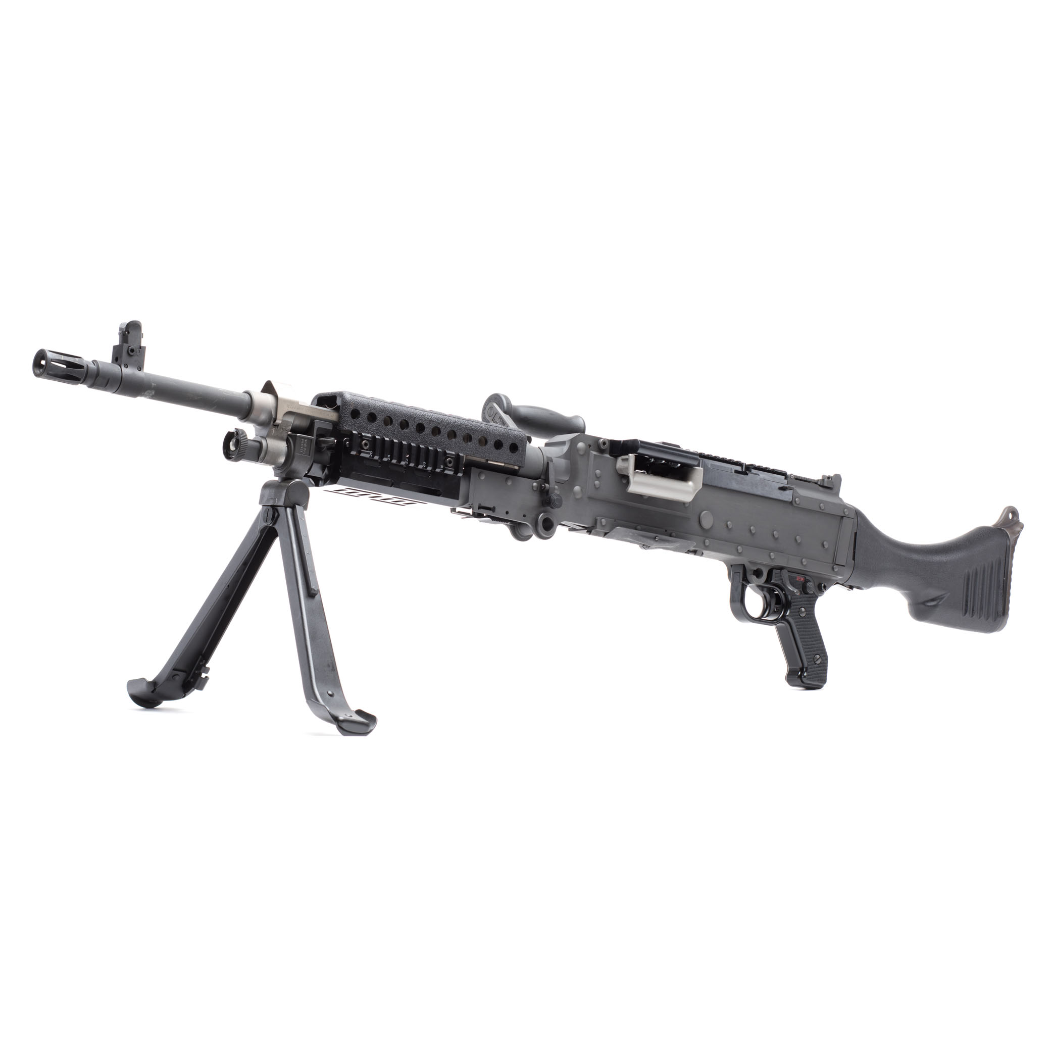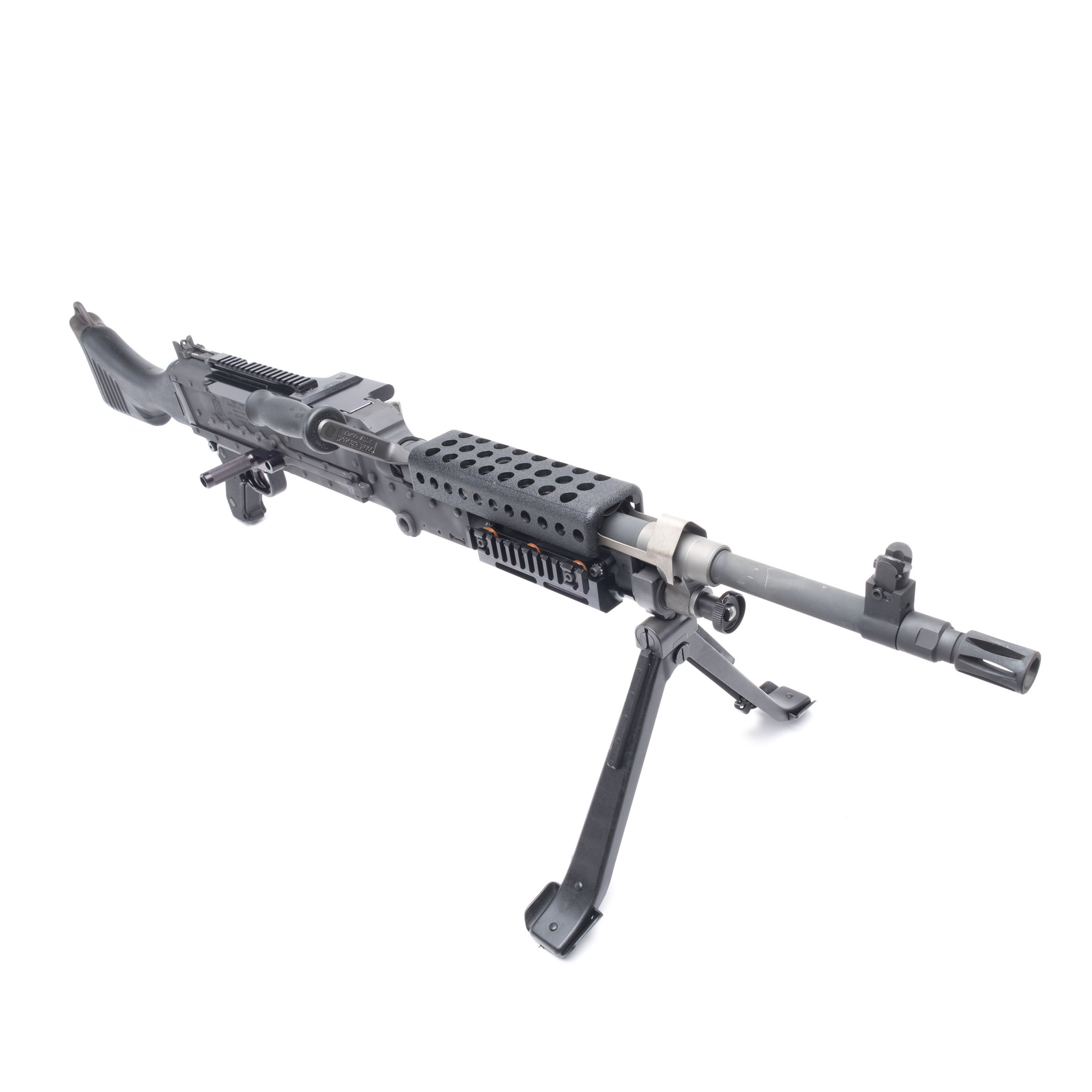 The US military General Purpose Machine Gun (GPMG), belt-fed, air-cooled, crew-served system chambered in 7.62mm NATO, Infantry model.