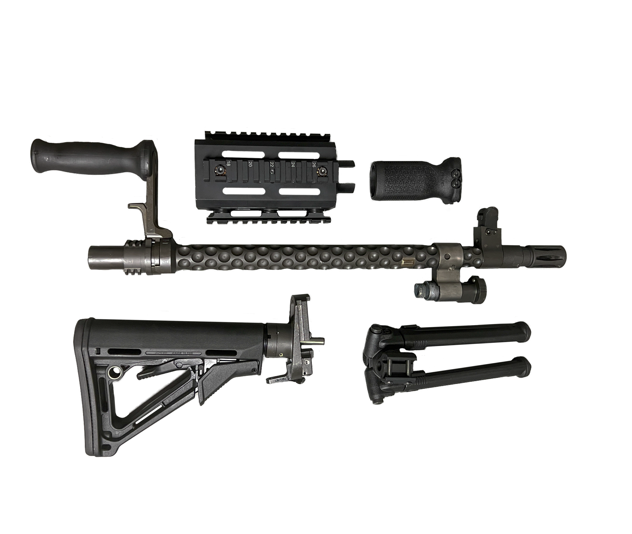 This conversion takes your standard “Bravo” configuration weighing in at 27.5 lbs. and an overall length of 49 inches. Bringing it down to 22.3 lbs. with an overall length of 41.25 inches.